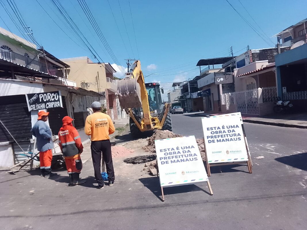 A Prefeitura de Manaus, por meio da Secretaria Municipal de Infraestrutura (Seminf), realizou, nesta sexta-feira, 18/7, a recuperação de um trecho da rede de drenagem profunda na rua Rio Branco, bairro São Raimundo, zona Oeste da capital.