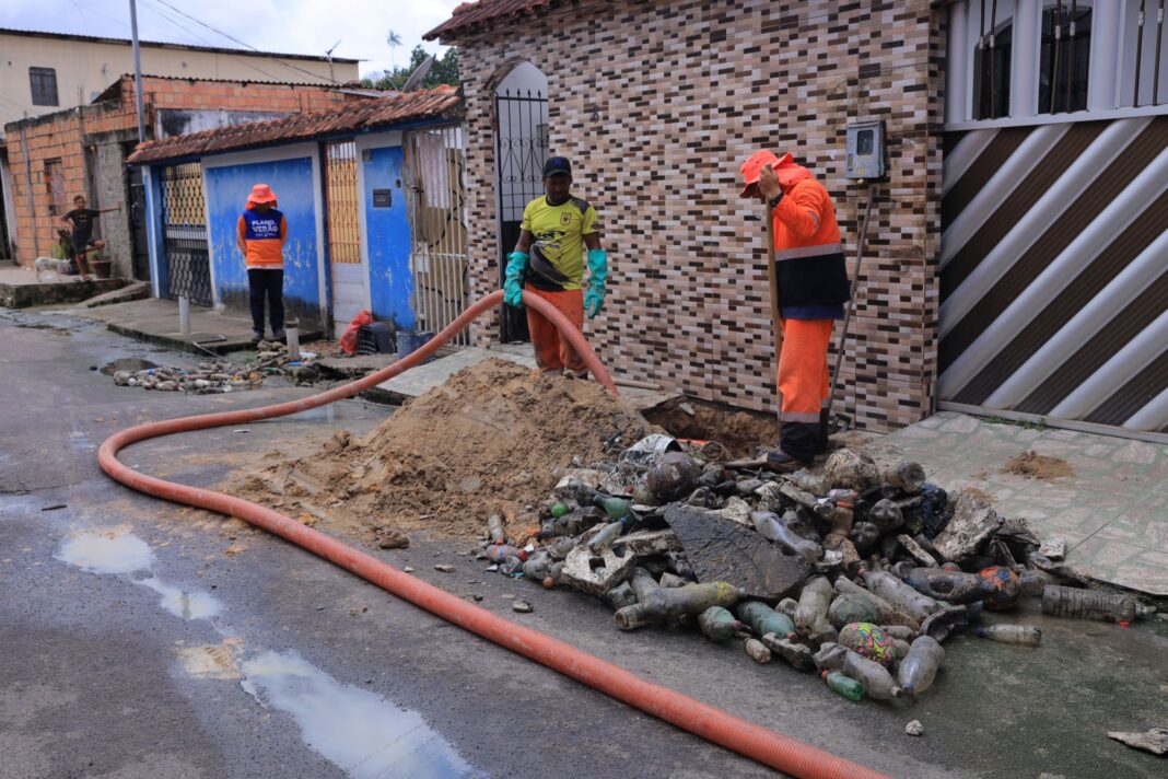 A Prefeitura de Manaus, por meio da Secretaria Municipal de Infraestrutura (Seminf), atuou, nesta sexta-feira, 20/2, no combate a alagamentos registrados na rua Iemanjá, no bairro Tancredo Neves, zona Leste da capital. A intervenção resultou na remoção de uma grande quantidade de resíduos sólidos da rede de drenagem, devolvendo o pleno escoamento das águas pluviais e mais segurança para os moradores da área.