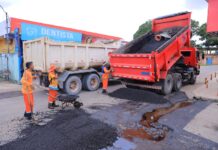 Após a forte pressão das águas das chuvas gerarem o desanelamento dos tubos, onde causaram a fuga de material, consequentemente a abertura de uma cratera na via, as equipes realizaram o anelamento da tubulação, devolvendo o bom funcionamento do sistema.