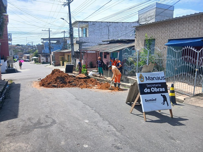 A Prefeitura de Manaus, por meio da Secretaria Municipal de Infraestrutura (Seminf), atua com celeridade na substituição de tubulação deteriorada na rua Santos Dumont, no bairro Compensa, zona Oeste da capital. A intervenção, realizada nesta sexta-feira, 18/7, tem como objetivo recuperar a rede de drenagem profunda da via, para garantir o escoamento adequado das águas pluviais e prevenir os alagamentos que historicamente afetam a região.