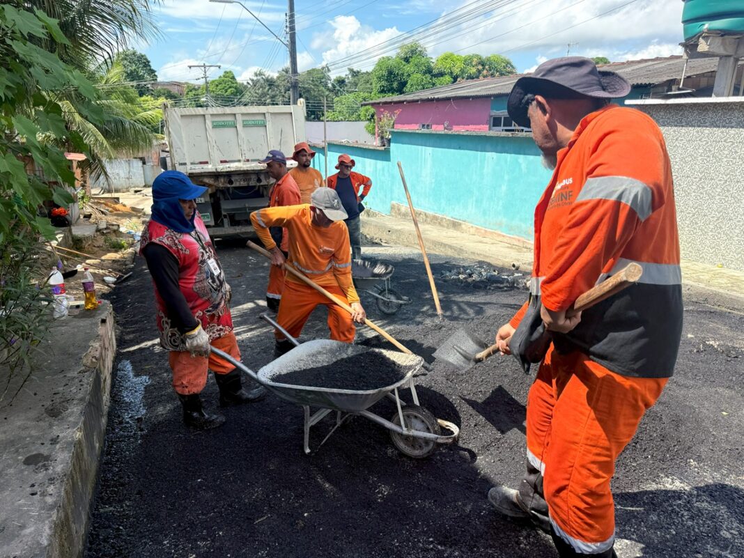 A Prefeitura de Manaus, por meio da Secretaria Municipal de Infraestrutura (Seminf), intensifica, nesta quarta-feira, 4/6, os trabalhos no segundo dia do projeto “Mutirão no Bairro”, no Colônia Antônio Aleixo. Com várias frentes de obras simultâneas, a ação leva serviços de recuperação asfáltica às ruas da comunidade.