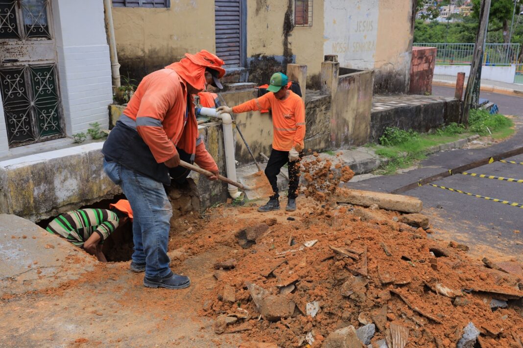 De acordo com informações da equipe da Seminf, a galeria rompeu devido ao vazamento de uma tubulação da concessionária de água do município. A empresa realizou os reparos necessários à sua rede, com isso, a equipe da Seminf entrou em ação com a escavação manual para a manutenção de aproximadamente 10 metros da galeria com a substituição dos tubos deteriorados por novas manilhas de concreto armado, assegurando os moradores da região.
