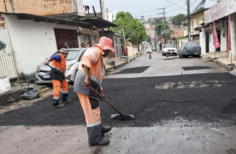 Os trabalhadores da Prefeitura de Manaus seguem atuantes por todas as zonas da cidade, levando obras de infraestrutura para a melhoria das áreas, e dando continuidade no atendimento às solicitações e mapeamento das ruas necessitadas.