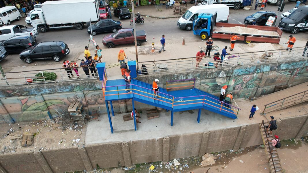 Como forma de melhorar o acesso e assegurar o direito de ir e vir dos usuários, a Prefeitura de Manaus, por meio da Secretaria Municipal de Infraestrutura (Seminf), entregou, nesta terça-feira, 16/1, a nova escada metálica, na Manaus Moderna, localizada no Centro, zona Sul da capital.