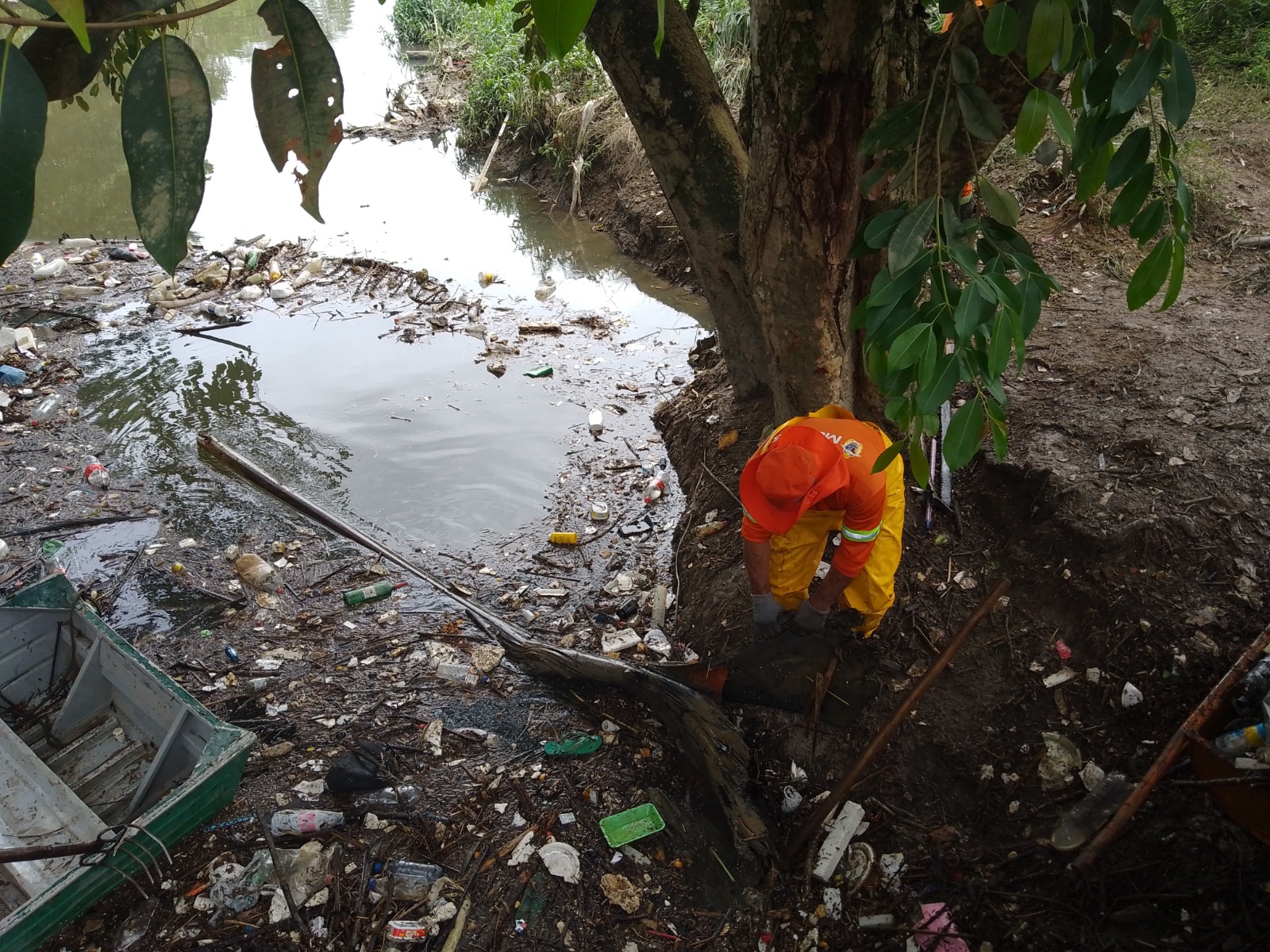 Nesta quarta-feira, 19/3, apesar da instabilidade do tempo, com pancadas de chuva em diversos momentos do dia, os garis não paralisaram as atividades e seguiram retirando toneladas de lixo do igarapé. Os trabalhadores entraram na água utilizando canoas e instrumentos manuais para remover os resíduos acumulados, que incluem plásticos, móveis velhos, garrafas PET e outros materiais descartados de forma irregular.