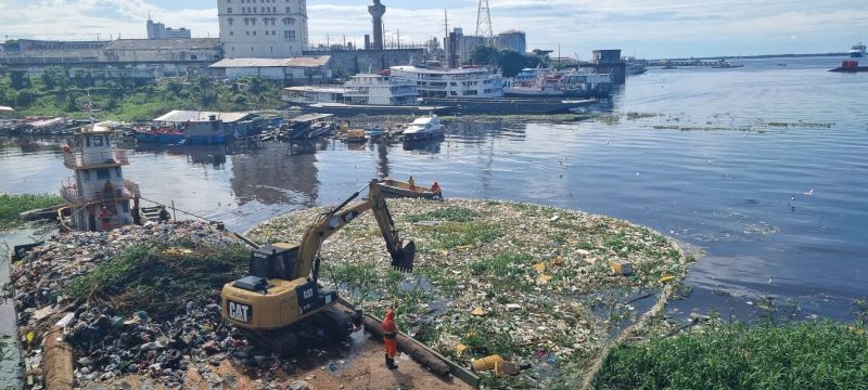 O coordenador da ação, Marlon Chagas, explica que a estratégia principal envolve a instalação de redes de contenção com cerca de 50 metros na saída dos igarapés. “Com um bote e a rede, vamos cercando o lixo que a chuva traz, acumulando nas orlas de Manaus. Depois de cercar os resíduos, amarramos a rede na balsa e, com a pá mecanizada, retiramos o lixo de dentro do rio, acumulamos na balsa e, posteriormente, fazemos o transbordo para as caçambas que seguem para o aterro sanitário municipal”, detalha.