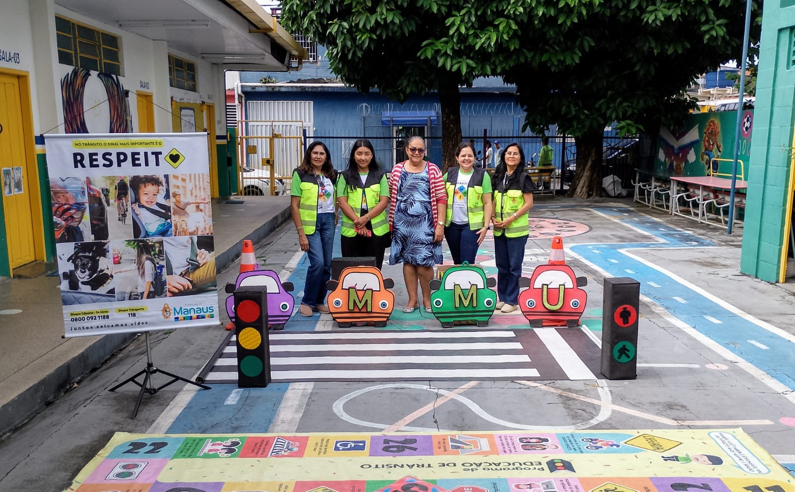 Orientações sobre obediência às leis de trânsito, noções de sinalização, além de comportamento seguro nas vias, foram algumas das instruções que a Prefeitura de Manaus, por meio do Instituto Municipal de Mobilidade Urbana (IMMU), apresentou, nesta quinta-feira, 3/4, aos estudantes do Centro Municipal de Educação Infantil (Cmei) Raquel de Queiroz, localizado no bairro da Paz, zona Centro-Oeste.
