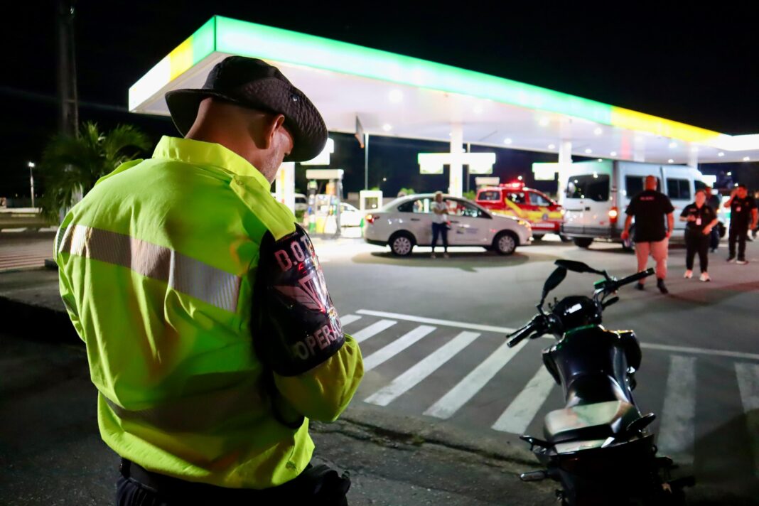 Na madrugada de domingo, 16/6, agentes de trânsito do IMMU participaram da Central Integrada de Fiscalização (CIF), em 16 postos de combustíveis, nas zonas Norte, Oeste e Leste de Manaus. Durante a operação, os agentes autuaram seis motociclistas por calçado inadequado, falta de capacete e retrovisor.