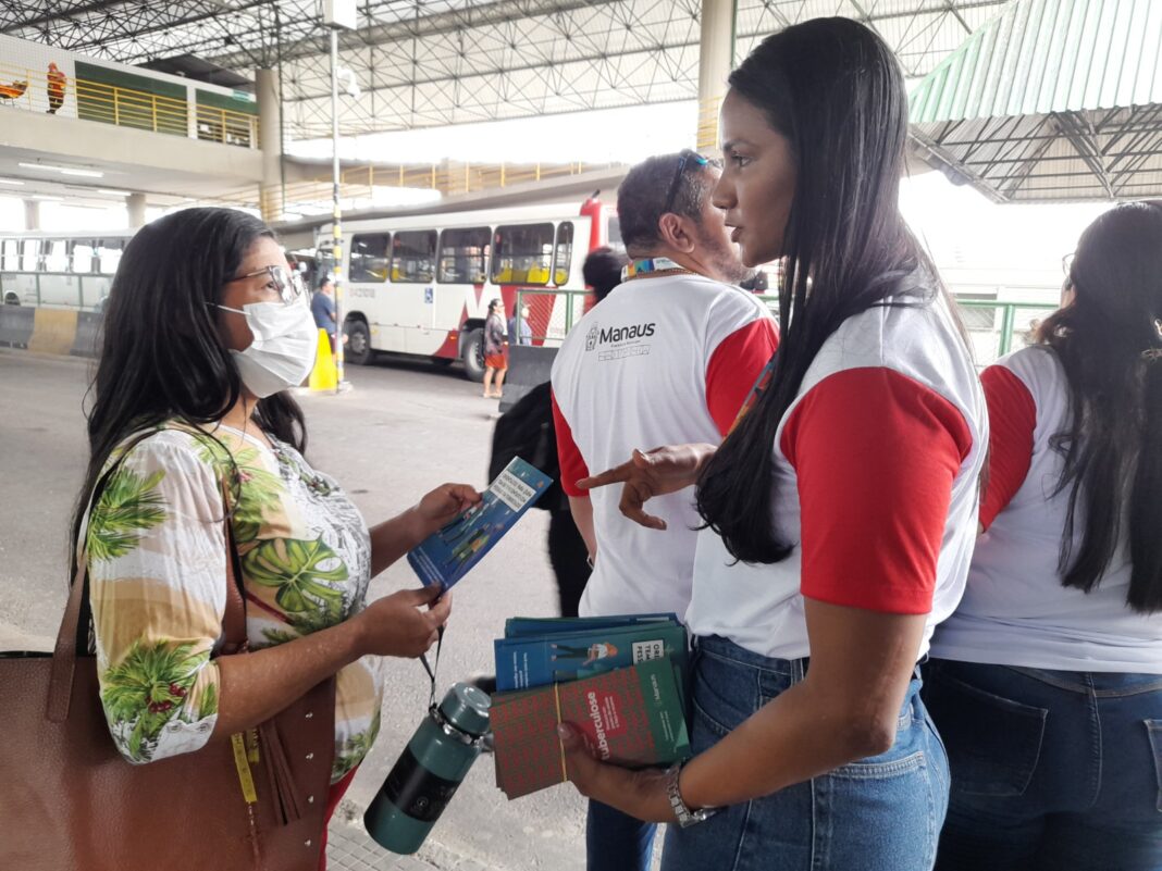 Para alertar a população sobre os sinais e sintomas da tuberculose, a Prefeitura de Manaus, via Distrito de Saúde (Disa) Norte de Manaus, da Secretaria Municipal de Saúde (Semsa), promoveu, na segunda-feira, 11/3, uma ação educativa no Terminal de Integração 3 (T3), no bairro Cidade Nova.