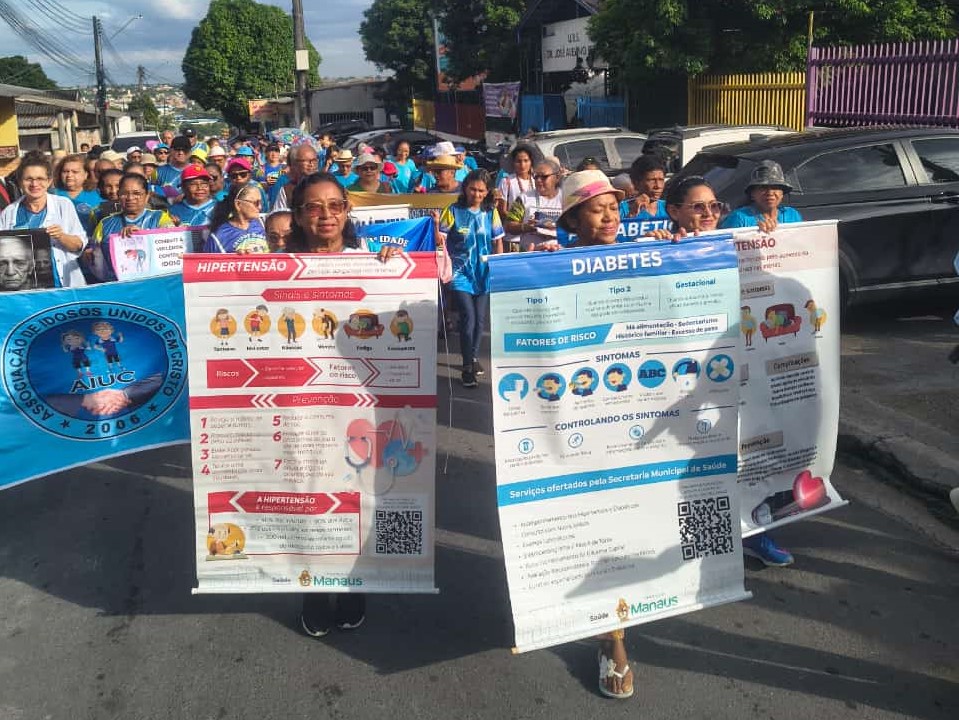 A Prefeitura de Manaus promoveu uma ação de saúde, na manhã desta quarta-feira, 25/6, voltada à conscientização sobre a importância da prevenção e controle da diabetes e ao combate à violência contra a pessoa idosa. A atividade, coordenada pela Secretaria Municipal de Saúde (Semsa), ocorreu no bairro Jorge Teixeira, zona Leste, e teve a participação de mais de 200 pessoas, integrantes de grupos de idosos, profissionais de saúde da rede municipal e usuários em geral.