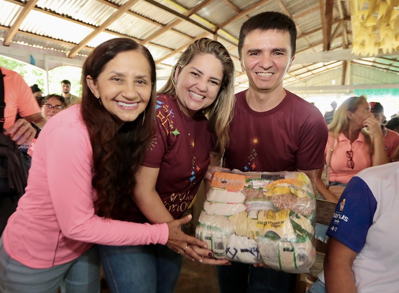 A Prefeitura de Manaus, por meio do Fundo Manaus Solidária (FMS), promoveu, nesta quinta-feira, 19/12, às 9h, ação natalina na comunidade Santa Maria, localizada no rio Negro, zona rural da capital. Durante a atividade foram entregues 300 cestas básicas e mais de 600 brinquedos para as crianças, proporcionando alegria e momentos especiais para todas as famílias contempladas com a ação.