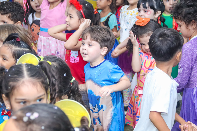 Com o tema “No bloco da alegria, o mosquito não se cria”, o Centro Municipal de Educação Infantil (Cmei) Maria do Céu, da Prefeitura de Manaus, localizado no bairro Planalto, zona Oeste, realizou, nesta quinta-feira, 27/2, o “Bailinho de Carnaval”, que encerra as atividades sobre a prevenção e cuidados contra o mosquito da dengue. A ação promovida pela Secretaria Municipal de Educação (Semed) acontece, em tempo integral, com a participação de 270 crianças do 1º e 2º períodos. A atividade também contou com a apresentação do projeto “Os garis da alegria”, da Secretaria Municipal de Limpeza Urbana (Semulsp).
