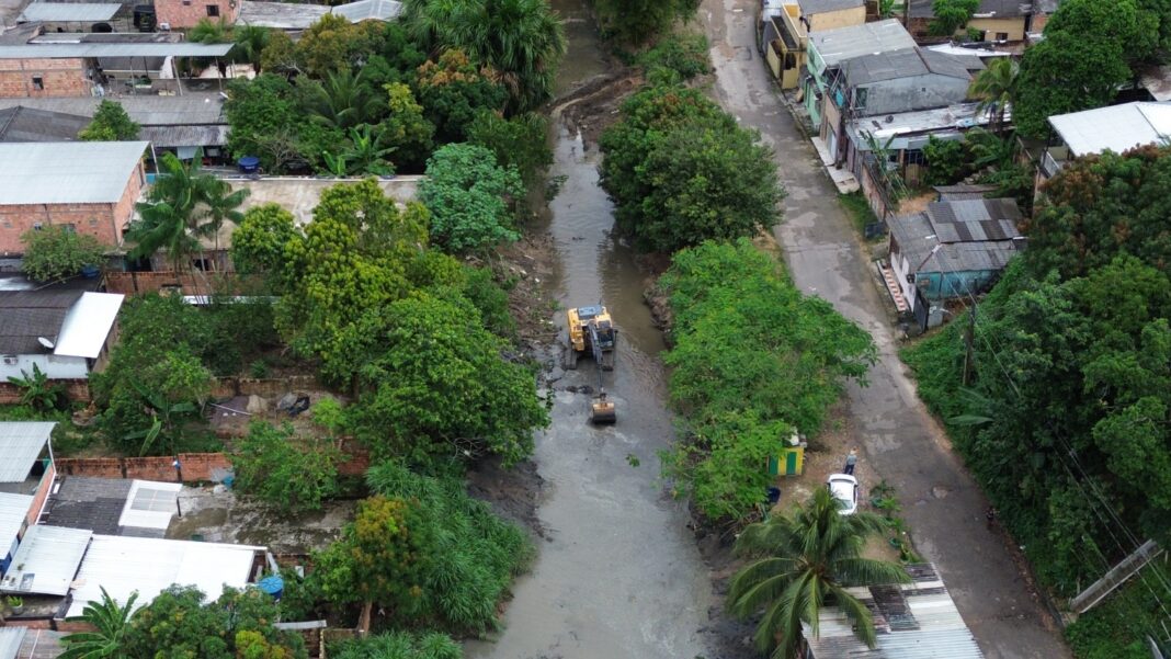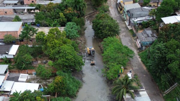 A Prefeitura de Manaus, por meio da Secretaria Municipal de Infraestrutura (Seminf), executa, nesta quinta-feira, 19/3, uma ampla ação de dragagem e limpeza no igarapé localizado entre as ruas Maracanã e Carpina, no bairro Redenção, zona Centro-Oeste da capital. A iniciativa atende diretamente às solicitações dos moradores e leva mais segurança, dignidade e qualidade de vida para a comunidade da área.