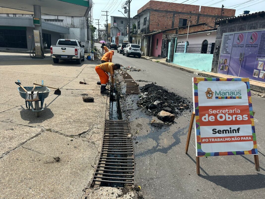 A Prefeitura de Manaus, por meio da Secretaria Municipal de Infraestrutura (Seminf), trabalha de maneira intensa na limpeza e desobstrução das galerias de águas pluviais ou bueiros, canaletas e galerias da capital. A medida faz parte de uma força-tarefa com a missão de auxiliar no escoamento mais rápido da água nos dias de chuva, além de contribuir para que não haja alagamentos na cidade.