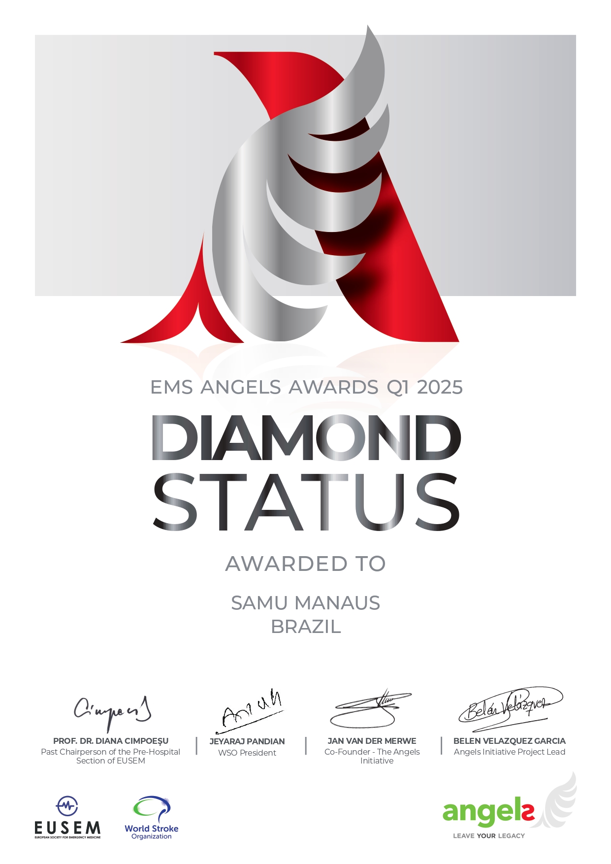 Esta é a segunda vez que o Samu Manaus recebe a mais alta das três certificações do EMS Angels, que trazem os status Ouro, Platina e Diamante, conforme o desempenho nos cuidados pré-hospitalares de AVC. O serviço municipal, que começou a ser avaliado em 2024, obteve status Ouro, nos dois primeiros trimestres do ano passado; Diamante, no terceiro; e Platina, no último.