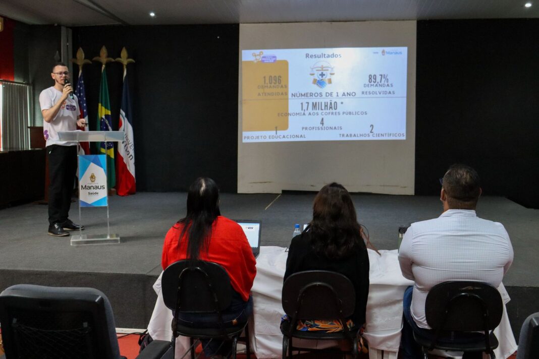 Outra experiência apresentada foi a “Atuação da Câmara de Resolução Extrajudicial na Redução da Judicialização da Saúde em Manaus/AM”. O trabalho foi apresentado pelo farmacêutico André Vinycius Cunha Pereira, servidor da Semsa, que explicou que a Câmara de Resolução foi implementada em 2023, composta por diferentes instituições, com o objetivo de evitar o ajuizamento de ações quando o usuário tem dificuldade em acessar consultas, exames, medicamentos ou outros serviços no SUS.