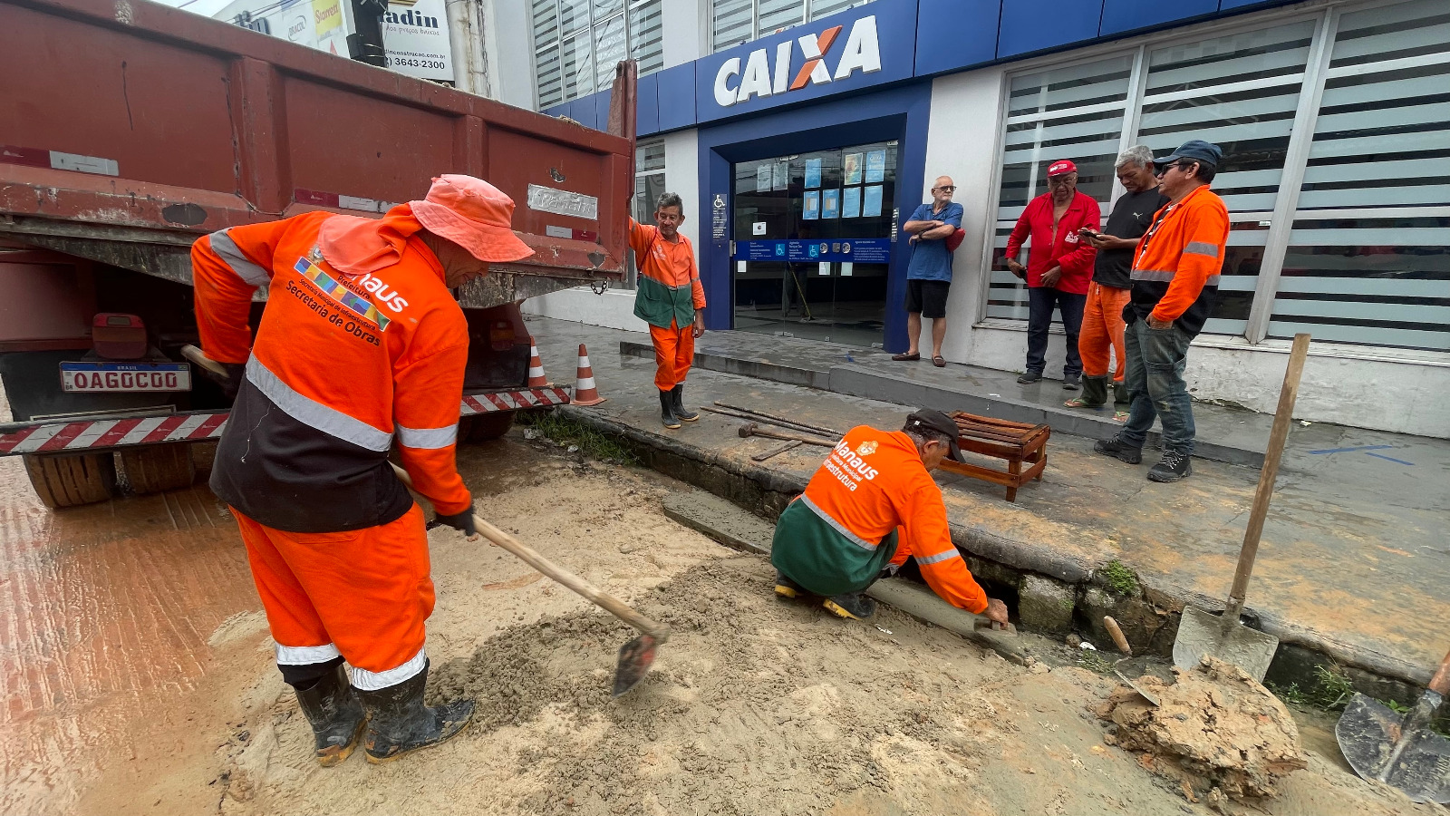 A Prefeitura de Manaus, por meio da Secretaria Municipal de Infraestrutura (Seminf), realiza o trabalho preventivo de recuperação de rede de drenagem na tradicional rua do Comércio, no Parque 10 de Novembro, zona Centro-Sul. As equipes atuam nesta quinta-feira, 9/3, em trecho da via onde se formou uma cratera.