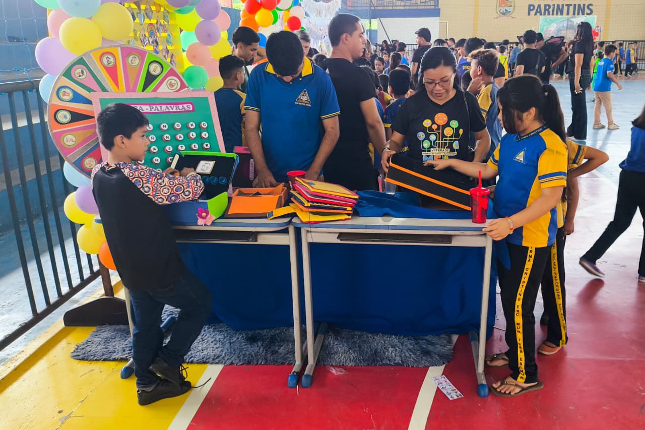 Com a mobilização de alunos, professores, pais e comunidade escolar em geral, a Escola Municipal Irmã Cristine, localizada no bairro de Itaúna II, promoveu na manhã desta quarta-feira (03) a culminância do projeto “Meio Ambiente: construindo cidadania e reciclagem”, por meio de uma feira do conhecimento interdisciplinar. A atividade faz parte da VII Feira de MEAs (Mostra de Materiais de Ensino Aprendizagem), promovida pela Prefeitura de Parintins, sob coordenação da Secretaria Municipal de Educação (Semed).