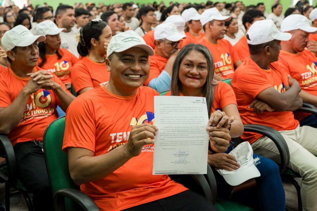 A Prefeitura de Parintins, por meio da Secretaria Municipal de Saúde, realizou a posse de novos Agentes Comunitários de Saúde (ACS) e Agentes de Combate às Endemias (ACE), que atuarão nas zonas urbana e rural do município. A cerimônia ocorreu no auditório do CESP-UEA e reuniu autoridades municipais, entre elas o prefeito Mateus Assayag, a vice-prefeita Vanessa Gonçalves, o secretário de Saúde, Clerton Florêncio, a presidente do Conselho Municipal de Saúde, Maria Rosa Oliveira, o presidente do Sindicato dos ACS e ACE, João Bosco dos Santos, além dos vereadores Azamor Pessoa, Julvan Medeiros e Fábio Cardoso, coordenadores da saúde, profissionais da área e familiares dos empossados.