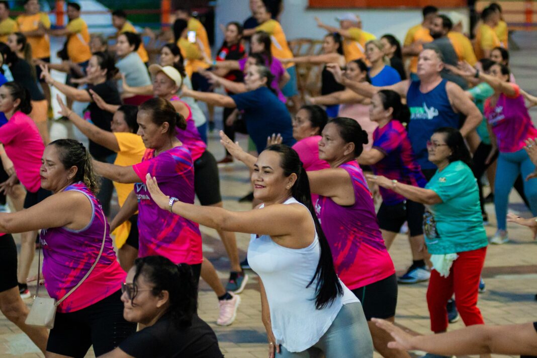 Ao comandado dos professores Marden Rodrigues, Jaqueline Teixeira, Daniele Prestes e Wesley Maia, o momento de promoção da saúde, reuniu centenas de alunas dos projetos: Movimente-se, Mexa-se Parintins, Reabilitar, Dançando na Melhor Idade e das Academias ao ar livre, e de homens e mulheres que participaram das atividades pela primeira vez.