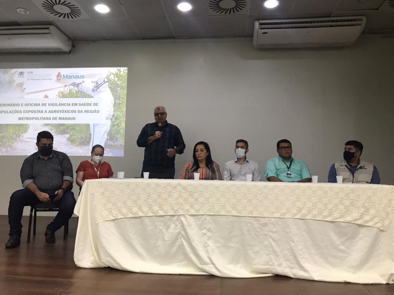A Agência de Defesa Agropecuária e Florestal do Estado do Amazonas (Adaf) participou, nesta quarta-feira (11/05), do primeiro dia do Seminário de Vigilância em Saúde de Populações Expostas a Agrotóxicos (VSPEA), coordenado pela Fundação de Vigilância em Saúde do Amazonas – Dra. Rosemary Costa Pinto (FVS-RCP), em parceria com a Secretaria Municipal de Saúde (Semsa) e os municípios de Iranduba, Novo Airão e Rio Preto da Eva.