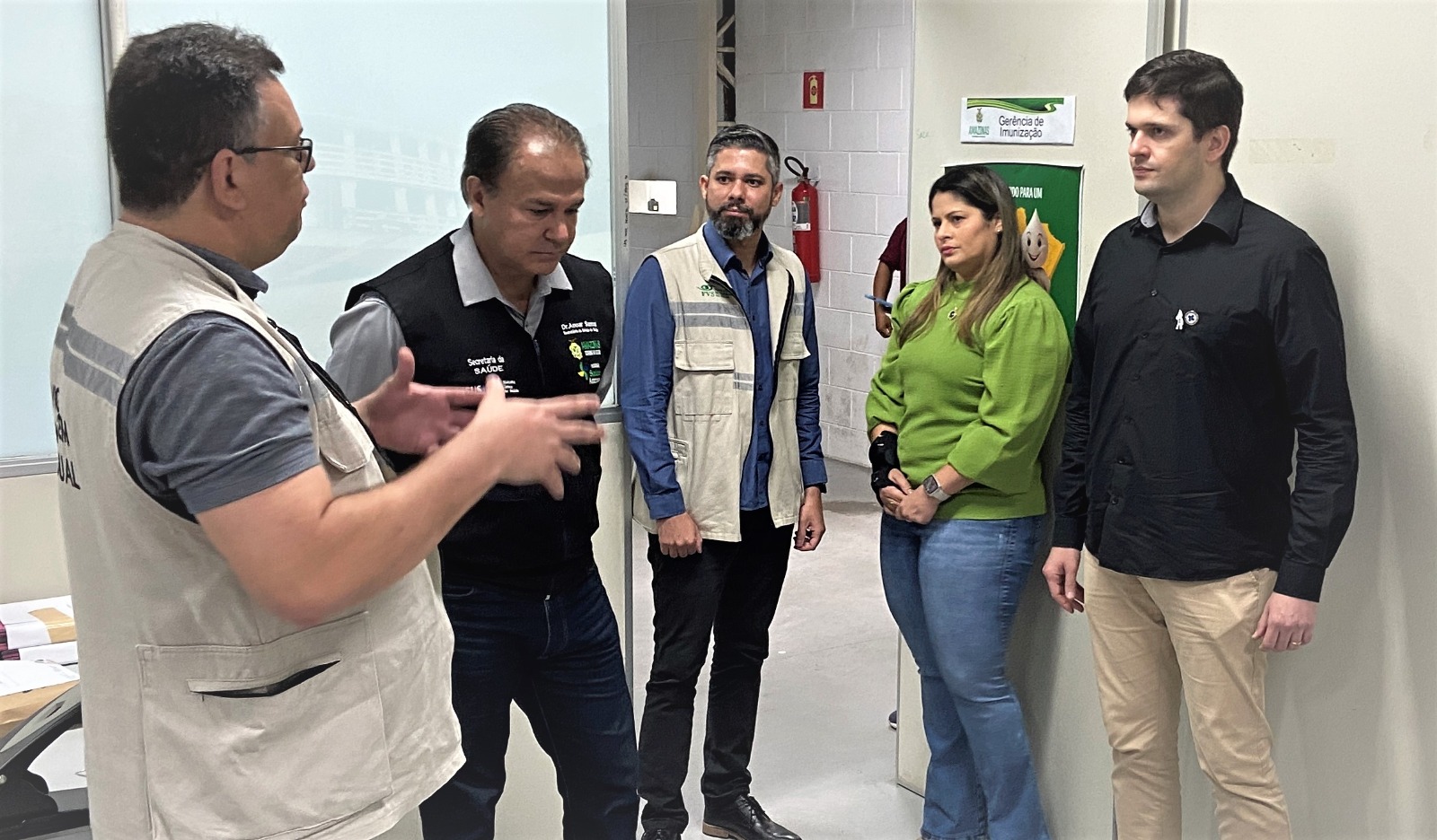 A Secretaria de Estado de Saúde do Amazonas (SES-AM) e a Fundação de Vigilância em saúde do Amazonas – Dra Rosemary Costa Pinto (FVS-RCP) receberam, nesta quinta-feira (11/05), visita técnica do Departamento de Imunização e Doenças Imunopreveníveis do Ministério da Saúde. A visita foi direcionada ao Centro de Distribuição de Imunobiológicos do Amazonas, em Manaus.