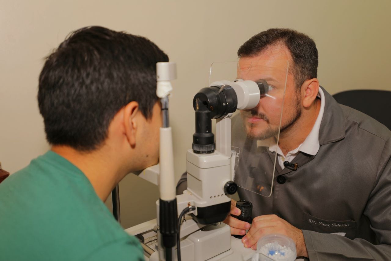 De acordo com o médico, o diagnóstico da saúde ocular é realizado por meio de exames laboratoriais e de imagem, com a utilização de aparelhos específicos como o auto refrator e o retinoscópio.