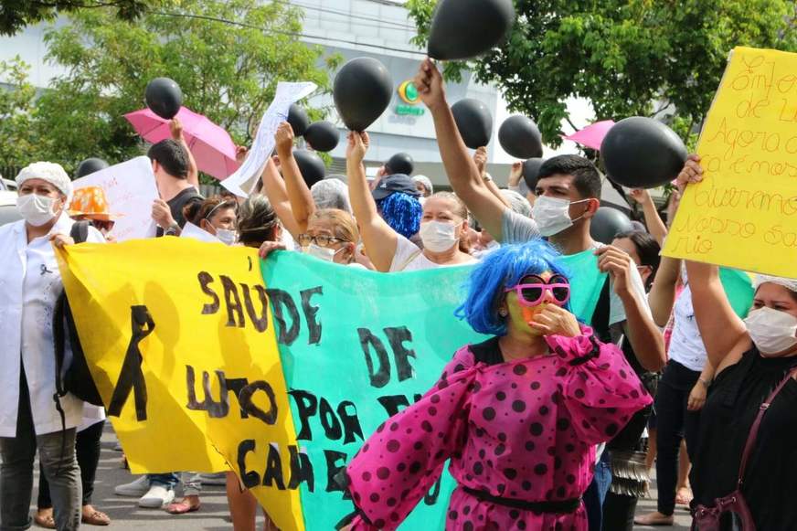 Enfermeiros e técnicos de enfermagem fizeram um protesto cobrando salários atrasados na manhã desta terça-feira (7). Os trabalhadores de empresas terceirizadas alegam cinco meses sem pagamentos. Em pronunciamento na sede do Governo, o governador Wilson Lima (PSC) disse que as empresas “estão sendo pagas em dia”.