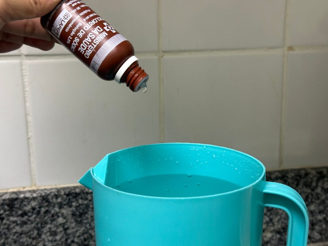 O hipoclorito de sódio é um desinfetante eficaz, usado para purificar a água e prevenir doenças hídricas, especialmente durante a estiagem - Foto: Anne Alves / FVS-RCP