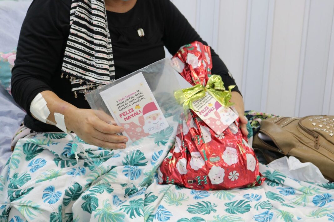 Os pacientes que fazem tratamento na Fundação Centro de Controle de Oncologia do Estado do Amazonas (FCecon), órgão vinculado à Secretaria de Estado de Saúde (SES-AM), receberam ontem (22/12) a visita do Papai Noel. Houve distribuição de presentes e kits de higiene e limpeza aos que estavam em atendimento nos setores de Radioterapia, Quimioterapia, Ambulatório e Enfermarias.