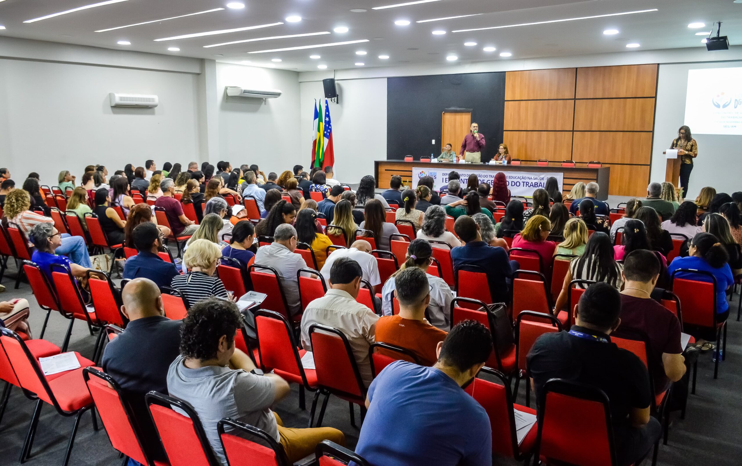 A Secretaria de Estado de Saúde (SES-AM) realiza, na quinta e sexta-feira (27 e 28/11), o I Encontro Estadual de Gestão do Trabalho, no auditório do Centro Universitário Fametro, em Manaus. O evento reúne profissionais, gestores e representantes institucionais. O objetivo é fortalecer a política de gestão do trabalho e aprimorar práticas voltadas à valorização dos servidores do Sistema Único de Saúde (SUS).