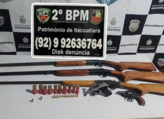Polícia Militar do Amazonas apreende cinco armas de fogo após denúncia, em Itacoatiara